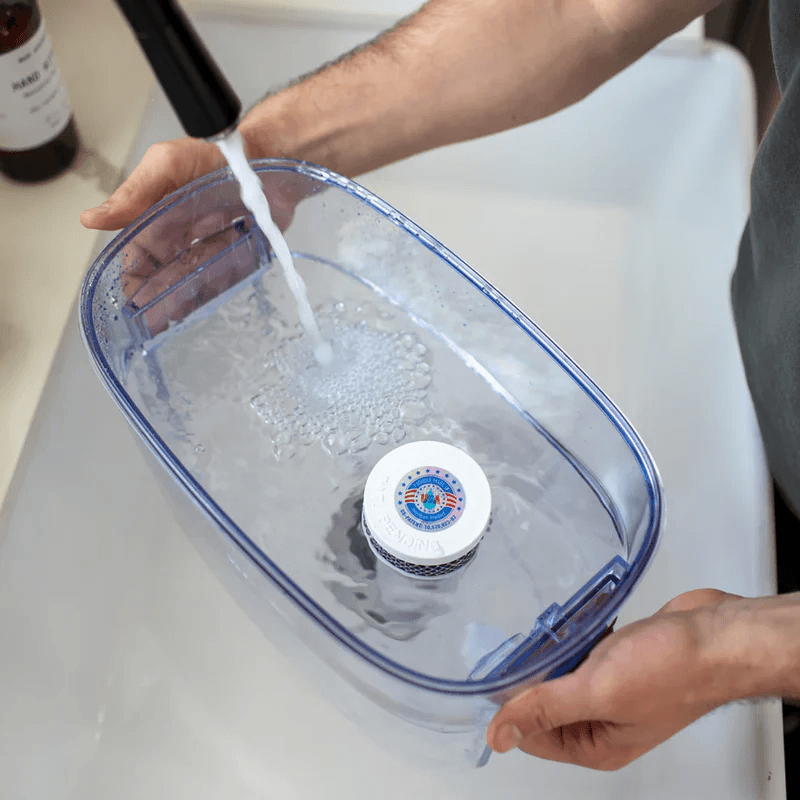 No installation required. Just prime the filter, twist it in, pour in water, and enjoy! It works by gravity filtration—no plumbing, no electricity, no tools needed.